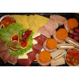 Prijs € 30,50Tomaat-garnaal, hamrolletjes met asperges, gebakken rosbief, bootje met beenham salade, varkensgebraad, serranoham met meloen, kippewit, filet d'anvers, Italiaanse salami en kipfilet met tuinkruiden. Koude groenten, aardapelen naar keuze en sausjes inbegrepen.